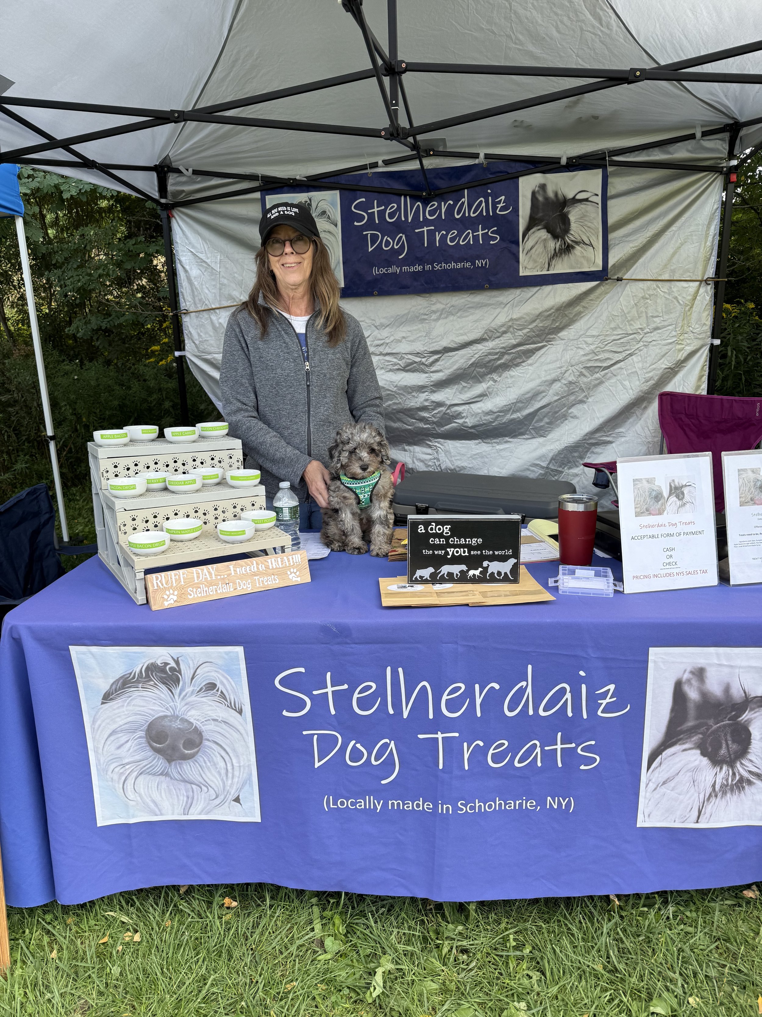 Stelherdaiz (named for their three dogs: Stella, Hershey, and Daizee) crafts all natural dog treats. They use local ingredients from Schoharie Valley Farms, Hop House Honey Farm, Wilderhook Maple Syrup, and as such the treats should be stored cold or frozen for best shelf life! Tested by both humans and dogs, these are easily the tastiest pet snacks in the valley! You can pick these up at our market, or at the Carrot Barn, Apple Barrel and other local events.